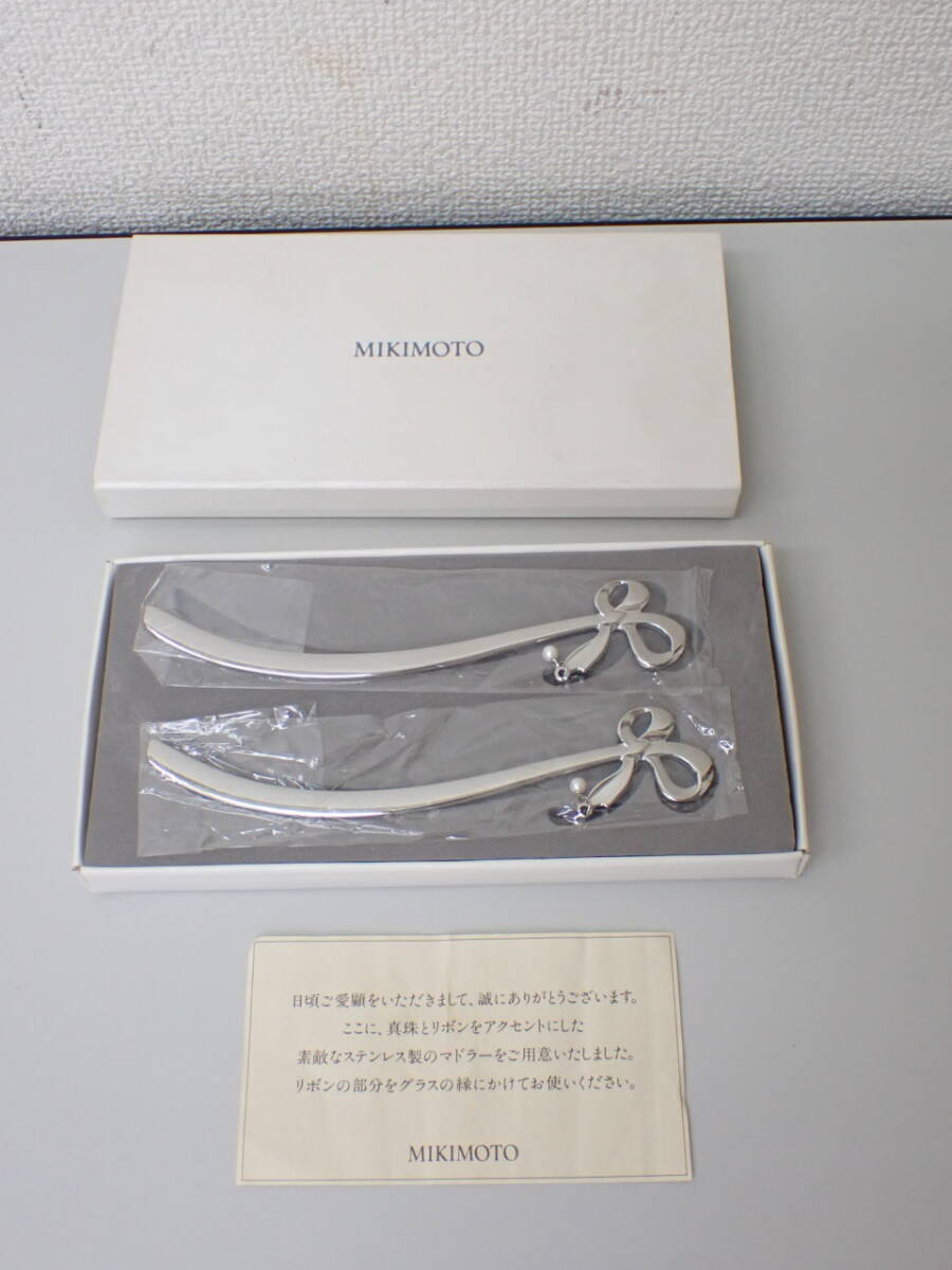 - 235-; ミキモト MIKIMOTO マドラー 2本セット 長さ;約12.2×幅;2.5cm 元紙箱・栞付き ★