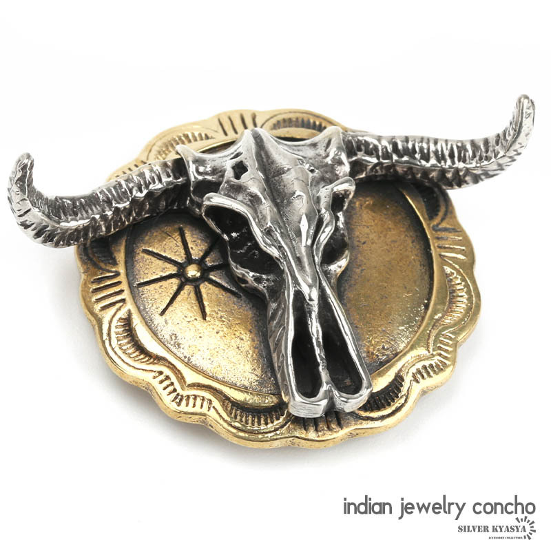 - バッファロー スカル ロングホーン ターコイズ コンチョ 飾りボタン ねじ式 財布 ウォレット スマホケース レザー パーツ