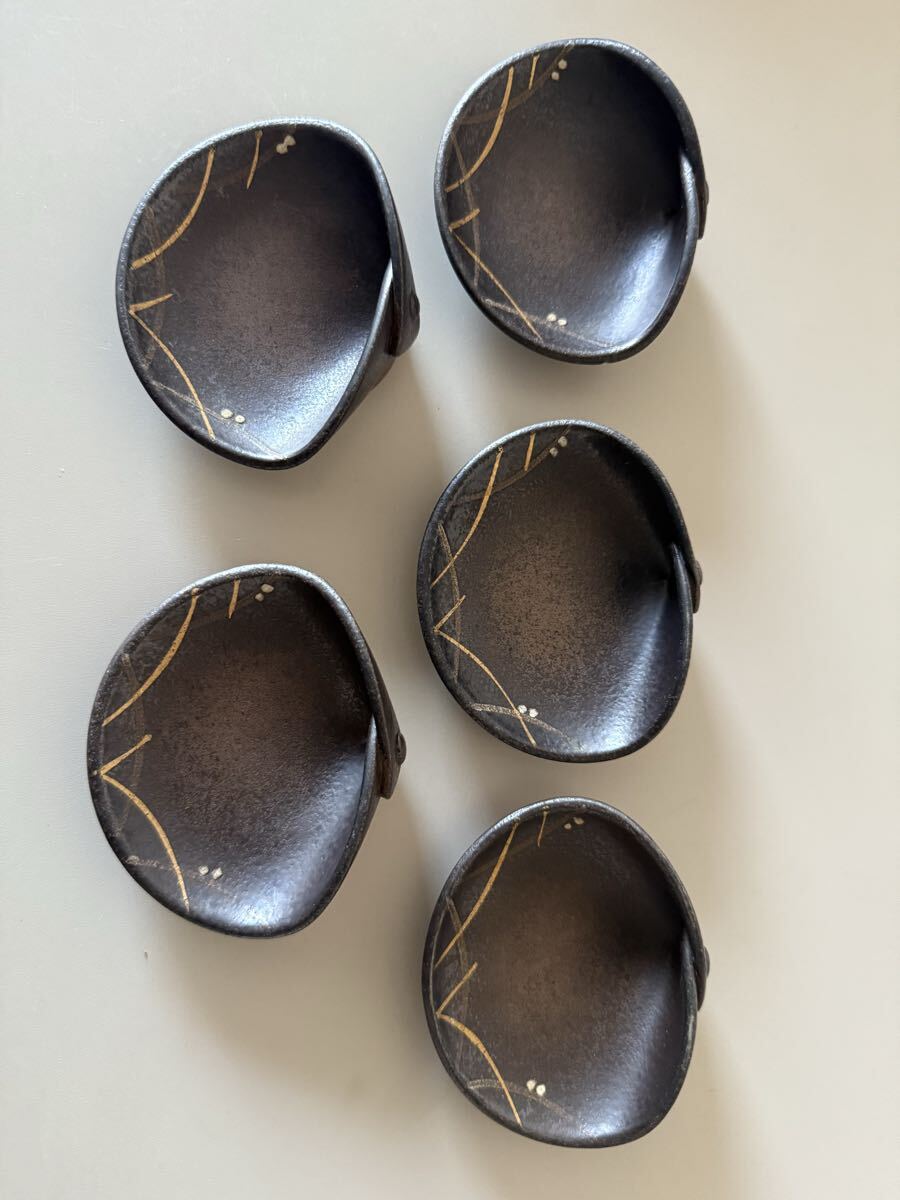 - 五春窯 小皿 和食器5枚セット 貝がらのような小皿 豆皿★中古