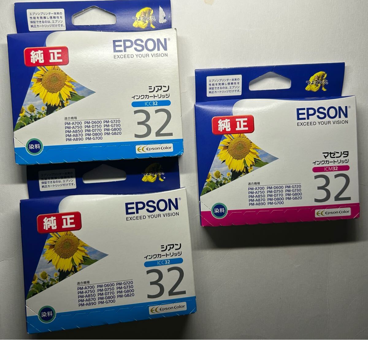 - 【送料無料/期限切/純正】3個 IC6CL32 6色パックの2色ICC32シアン2個,マゼンタICM32マゼンタ(ひまわり)適合機種:PM-A850,PM-D770,PM-G730
