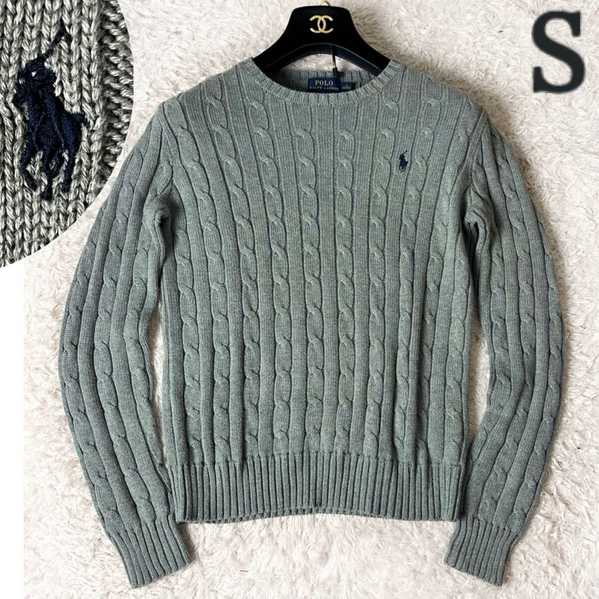 > POLO RALPHLAUREN ポロラルフローレン ケーブルニット コットン けーセーター ポニー ブランドロゴ ワンポイント刺繍 コットン グレー S