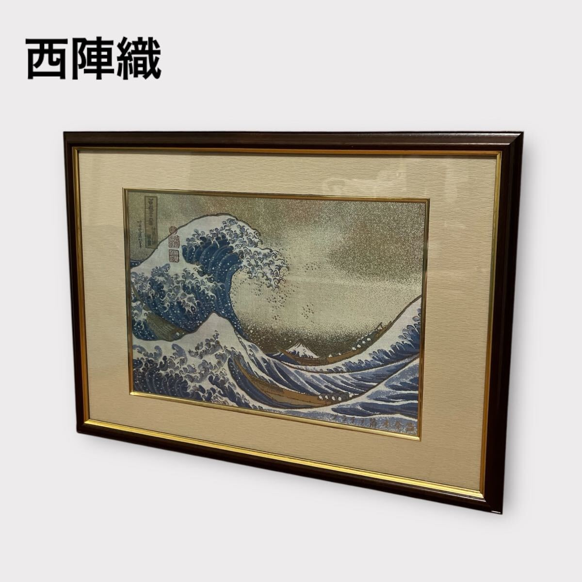 - 西陣織 額装 葛飾北斎 富嶽三十六景 神奈川沖浪裏 プラチナ箔 本金箔 MADE IN JAPAN USED IN JAPAN