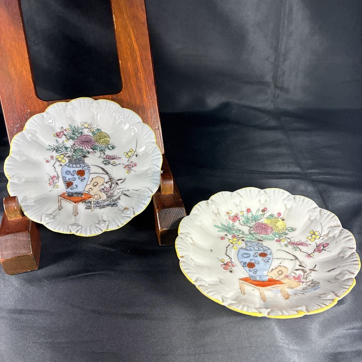 - 中国美術 宋 白磁 お取皿二枚 色絵 輪花