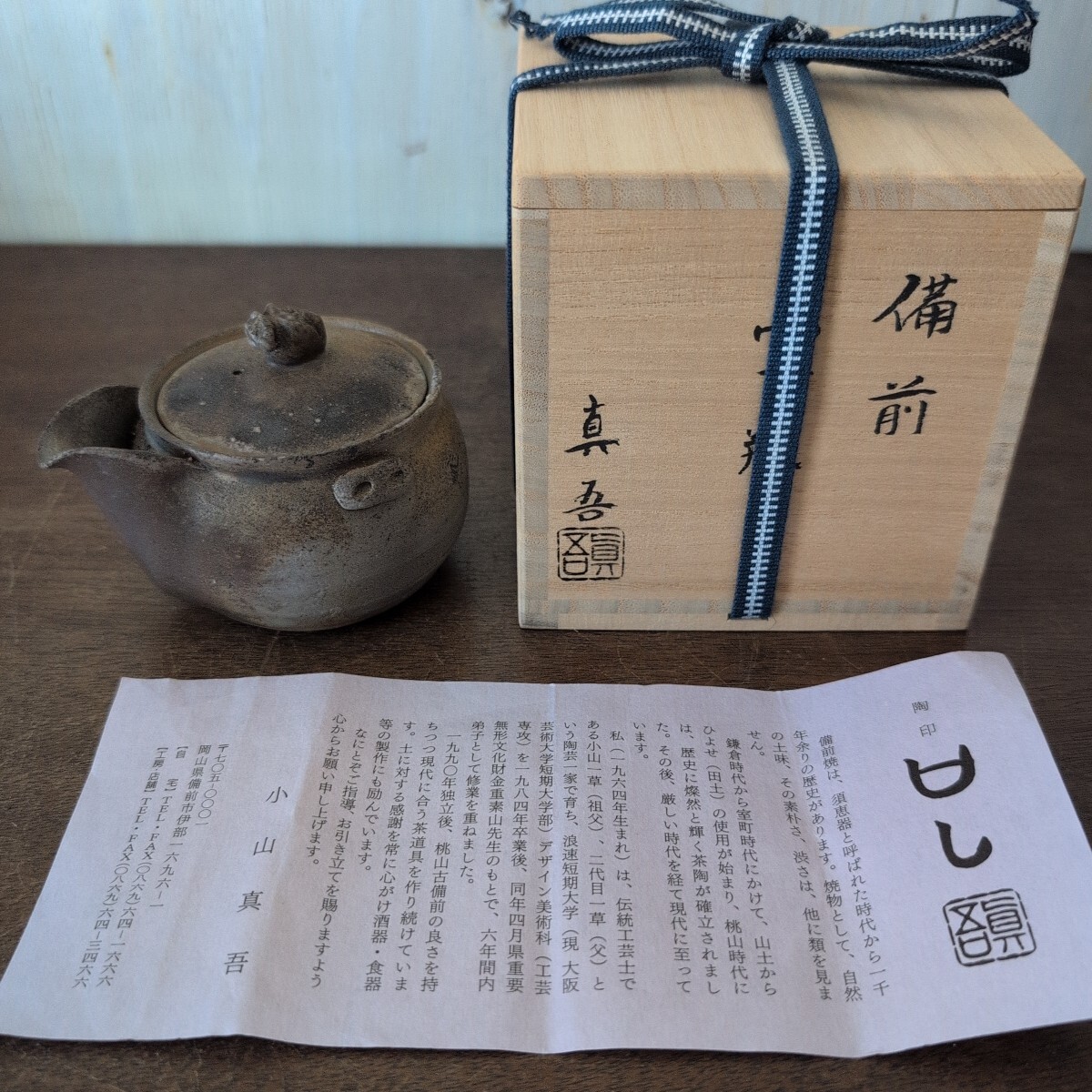 - 備前焼 小山真吾 柘榴 摘み 宝瓶 共箱 師 金重素山 父 小山一草 ザクロ 茶器 茶道具②