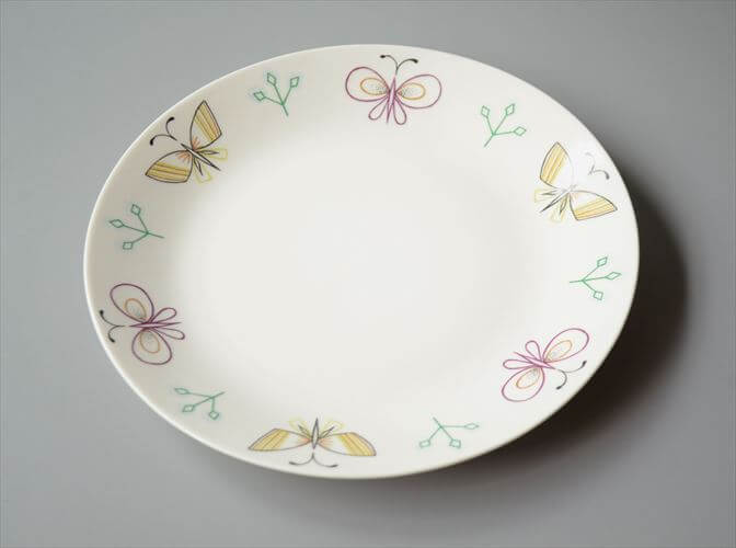 - ベルギー製 ヴィンテージ BOCH かわいい蝶の絵付け 20cm プレート ボッホ お皿 磁器 陶器 アンティーク 食器 ヨーロッパ_it3935
