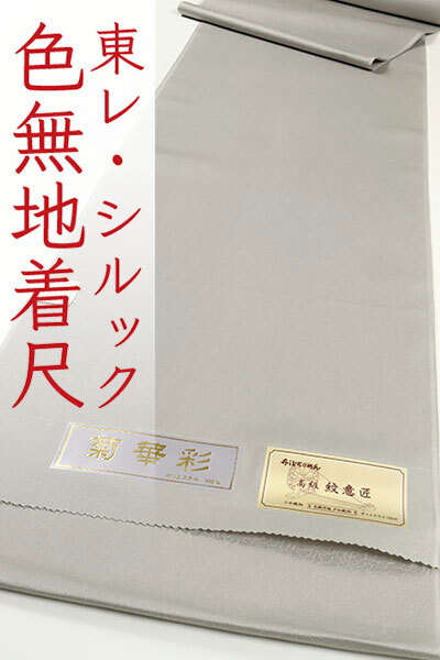和遊館 即決kka2793 東レ シルック 丹後ちりめん 高級 紋意匠 菊華彩 色無地 着尺 洗える着物 菊地紋 薄グレー
