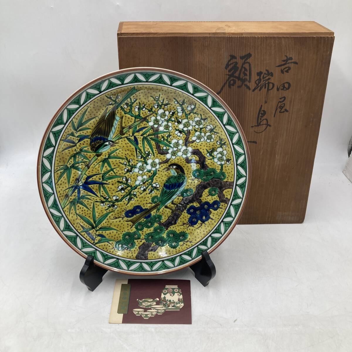 - 吉田屋 瑞鳥 額皿 大皿 飾皿 九谷光星 九谷焼 古美術 インテリア 骨董品 芸術 本品/台座/箱 1点