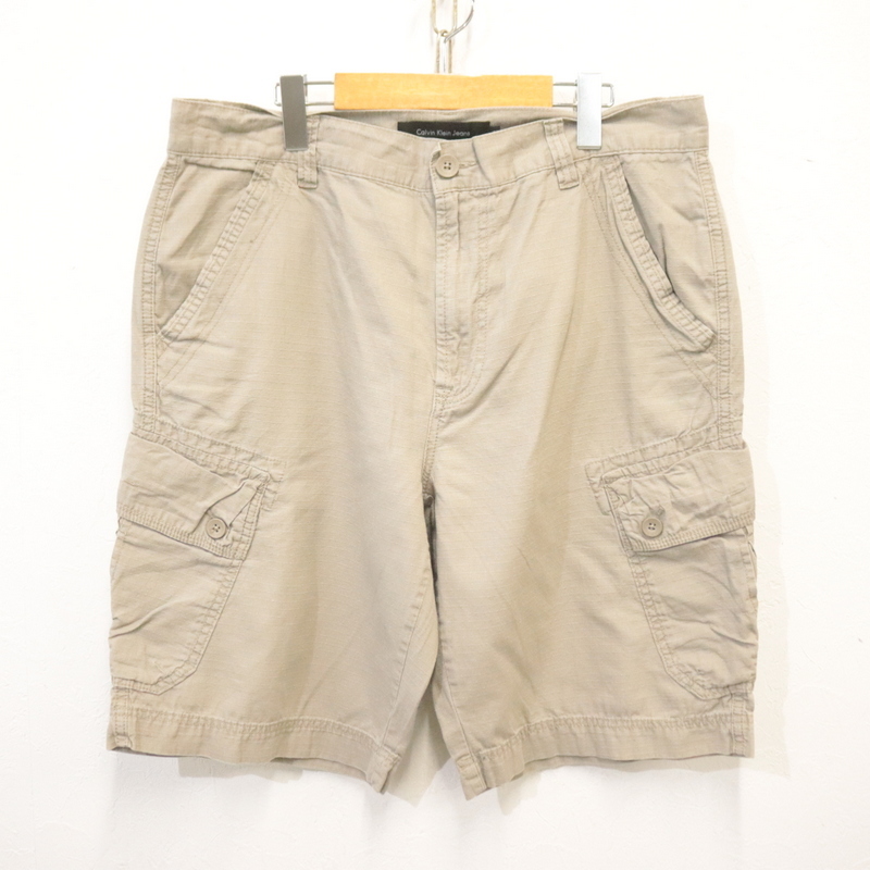 - K700 2000年代製 CalvinKleinJeans カーゴショーツ■00s W34 ベージュ IDEAL 短パン ハーフパンツ カルバンクライン 古着 アメカジ 70s 80s