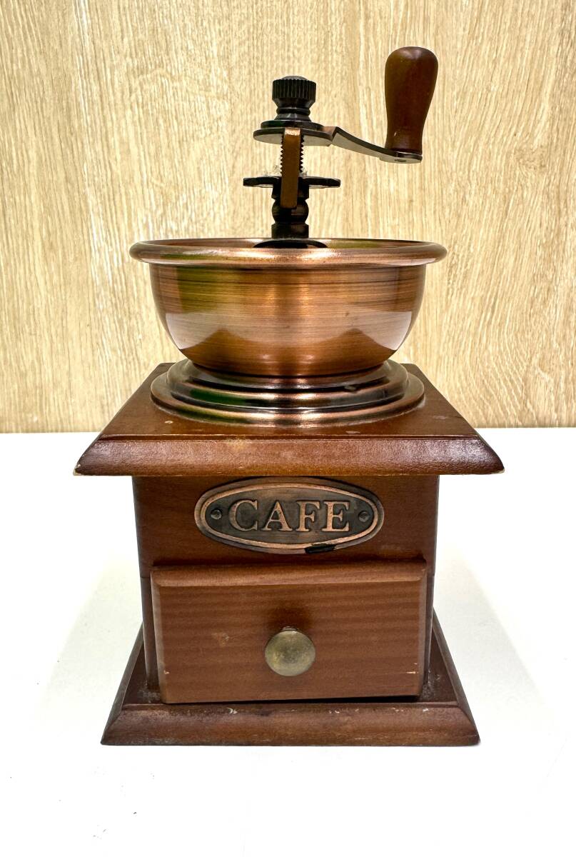 - 【20186】美品★コーヒーミル 手動式 手挽き 木製& 真鍮 インテリア 置き物 当時物 コンパクト 約9.5cm×12cm