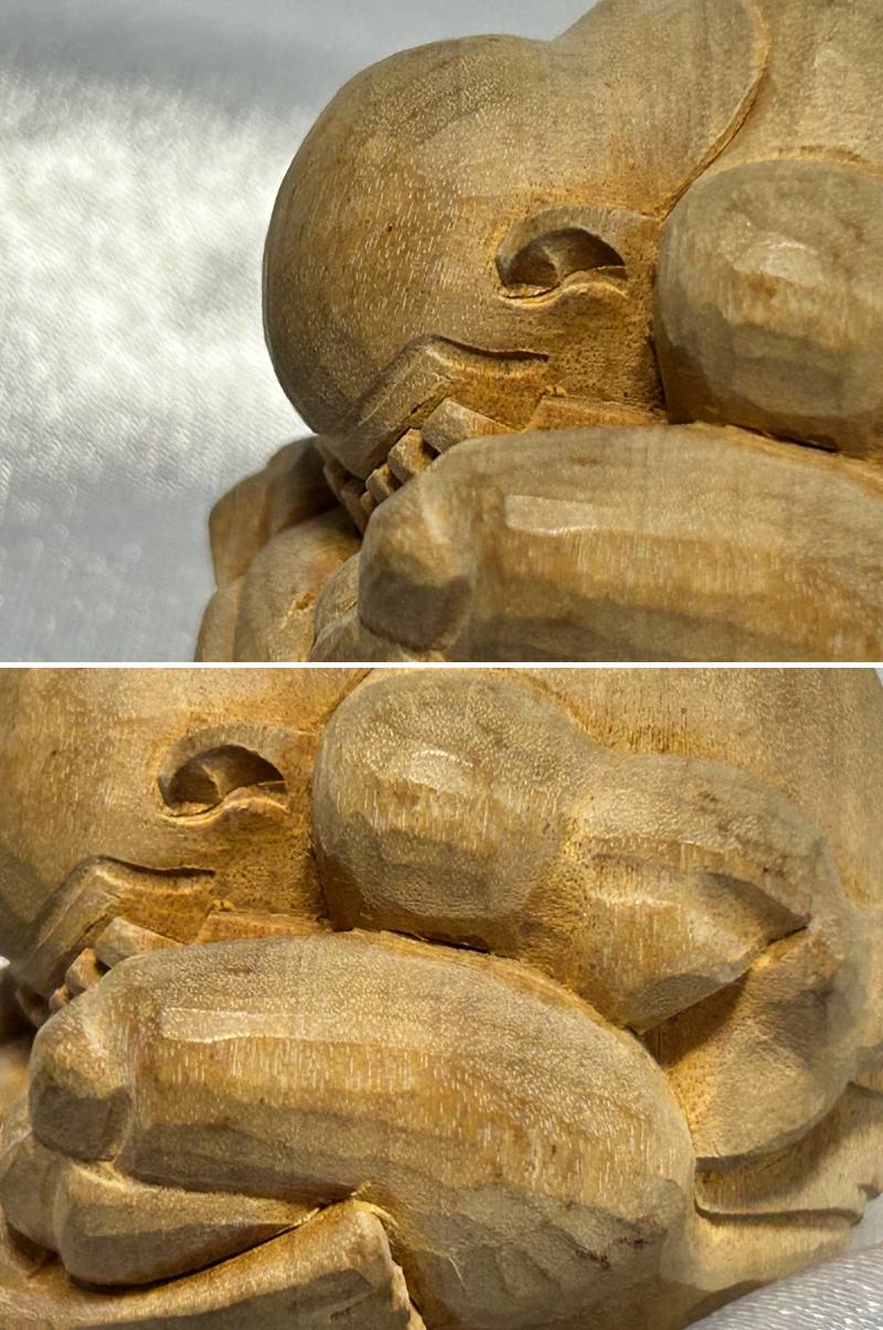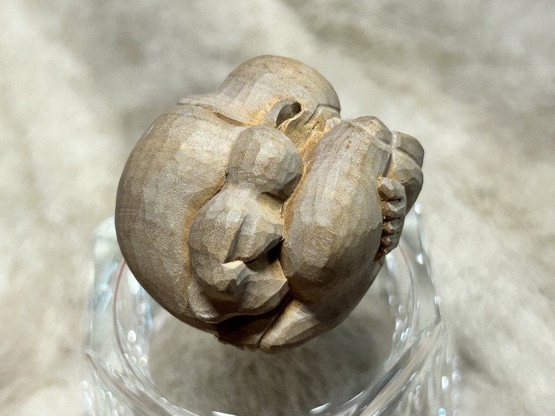 - ◇仏教美術/木彫 無垢【一刀彫 泣き仏陀 小さな仏様 5×5×4㎝ 】両手に包んで祈りを込める バリ島、シダ小物入れとともに。Q07534