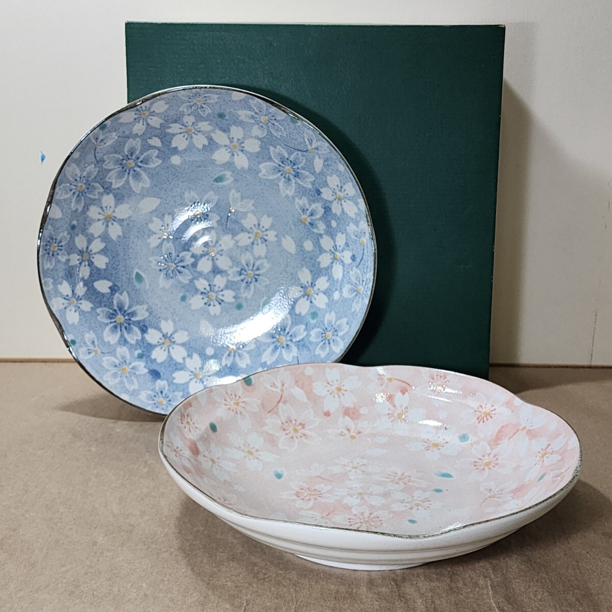 - 花詰め 23cm 盛皿 ペア 未使用箱入 /盛鉢/大鉢/食器/陶磁器/