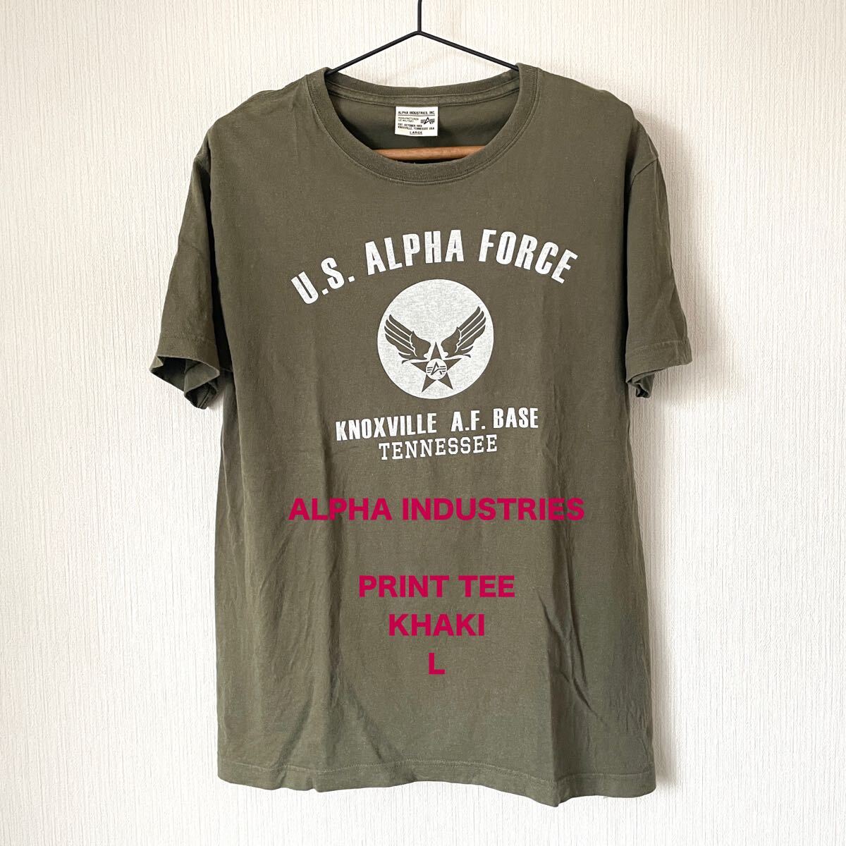 - 【ALPHA INDUSTRIES】アルファ インダストリーズ プリントTシャツ カーキ L 半袖 夏服 ミリタリー 匿名配送 メンズ ビンテージ 古着