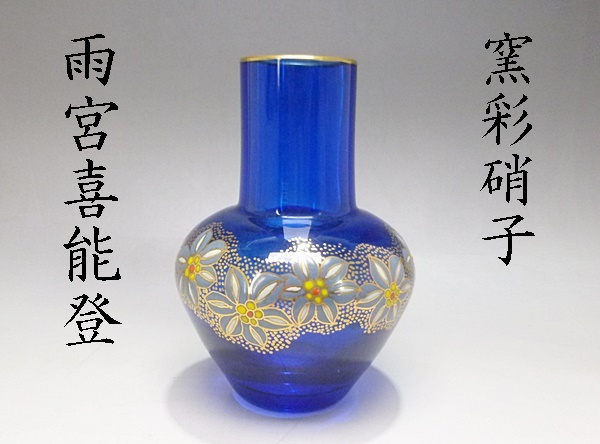 > 《ジャムルK》◆kks0730-141◆雨宮喜能登 窯彩硝子 花瓶 一輪挿し 一輪差し 花図 金彩 ガラス 約464g 工芸ガラス 作家物