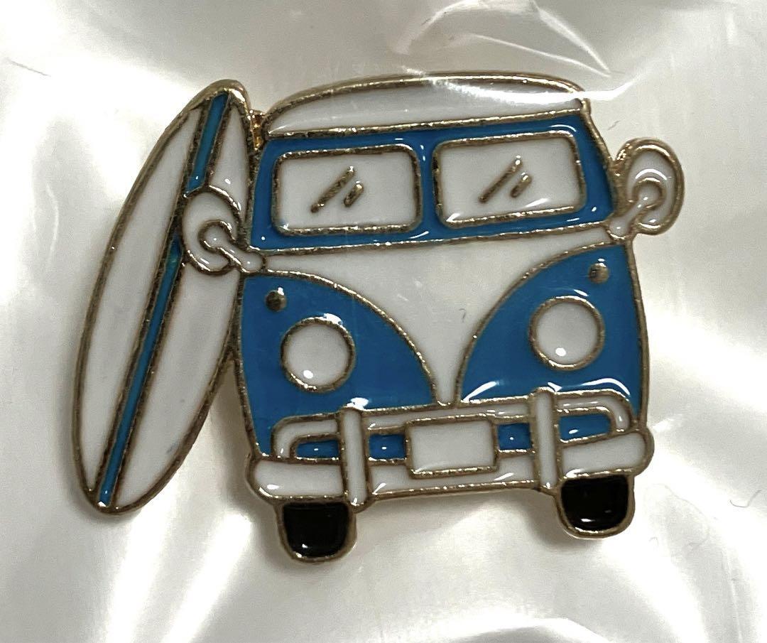 - 新品 送無★☆ピンバッジ ブルー ワーゲンバス 風/サーフボード★キャンプ ピンバッチ ピンバッヂ 車 サーフィン サマー 夏 アウトドア