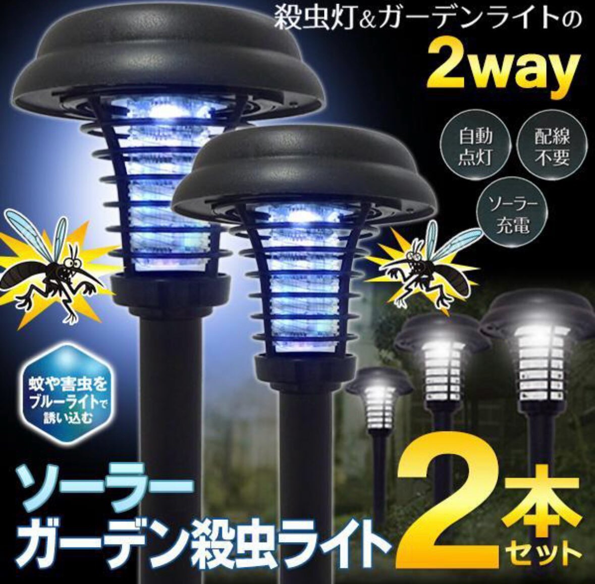 - A52 新品 日中は充電 夜間は自動で発電 配線不要 ソーラー ガーデンライト 2個セット 殺虫灯 屋外 人感センサー 防水 センサーライト LED