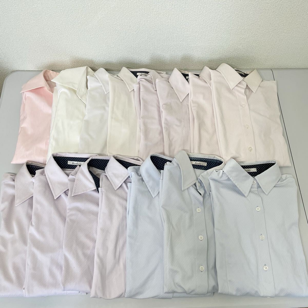 > 7-11号【中古】15着 大量 ブラウス Rizal 半袖 長袖/ブルー ホワイト ピンク 80サイズ 満タン 詰め合わせ セット/会社 制服 事務服 受付