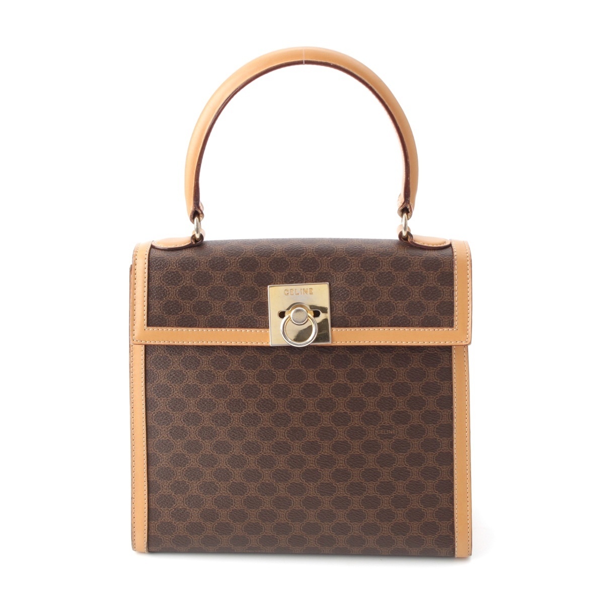 > セリーヌ ヴィンテージ マカダム 2way トップハンドル ロゴ金具 ハンドバッグ ブラウン【中古】