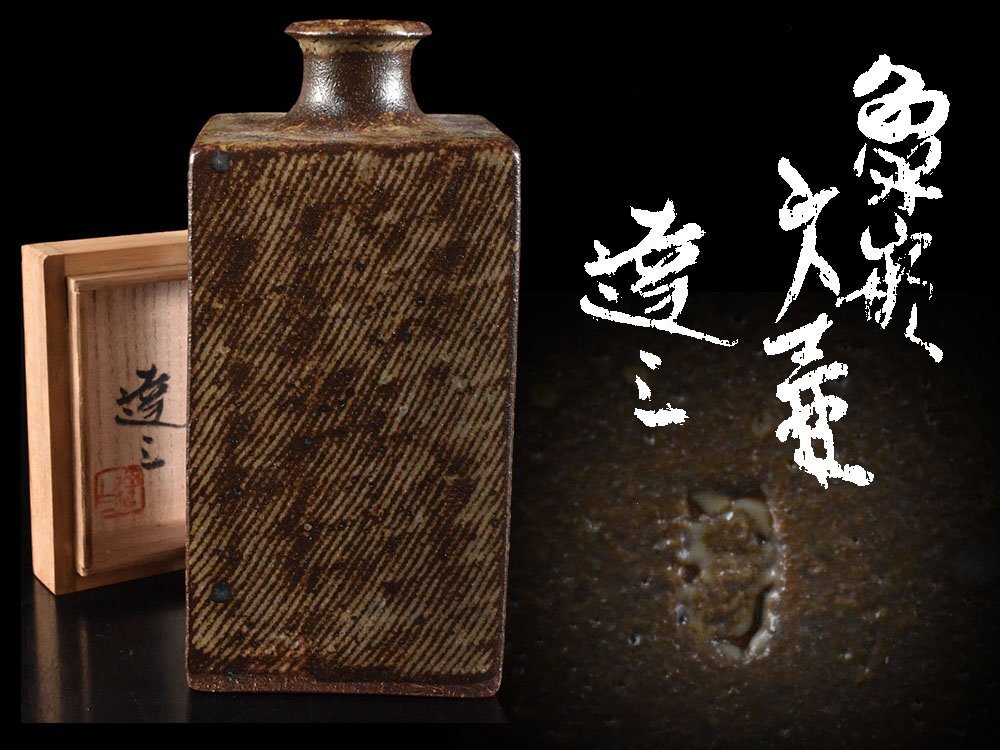 > 【雲】某名家収蔵品 人間国宝 島岡達三 益子焼 象嵌文壺 在銘 陶印 共箱 古美術品(花瓶 飾壺)Y6144 OTxdew