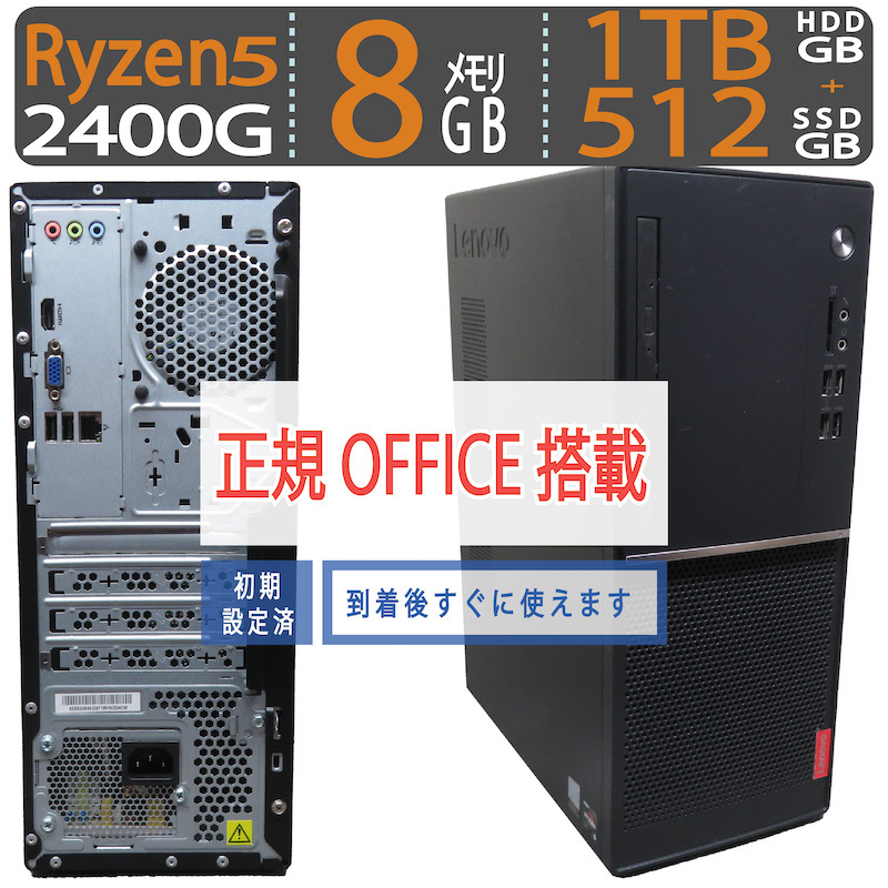 - 【高速処理】◆Lenovo V530-15ARR ◆ Ryzen 5 2400G [高速CPU] /高速 512GB SSD+ 1TB HDD / メモリ 8GB ◆ win11 Pro / Office付