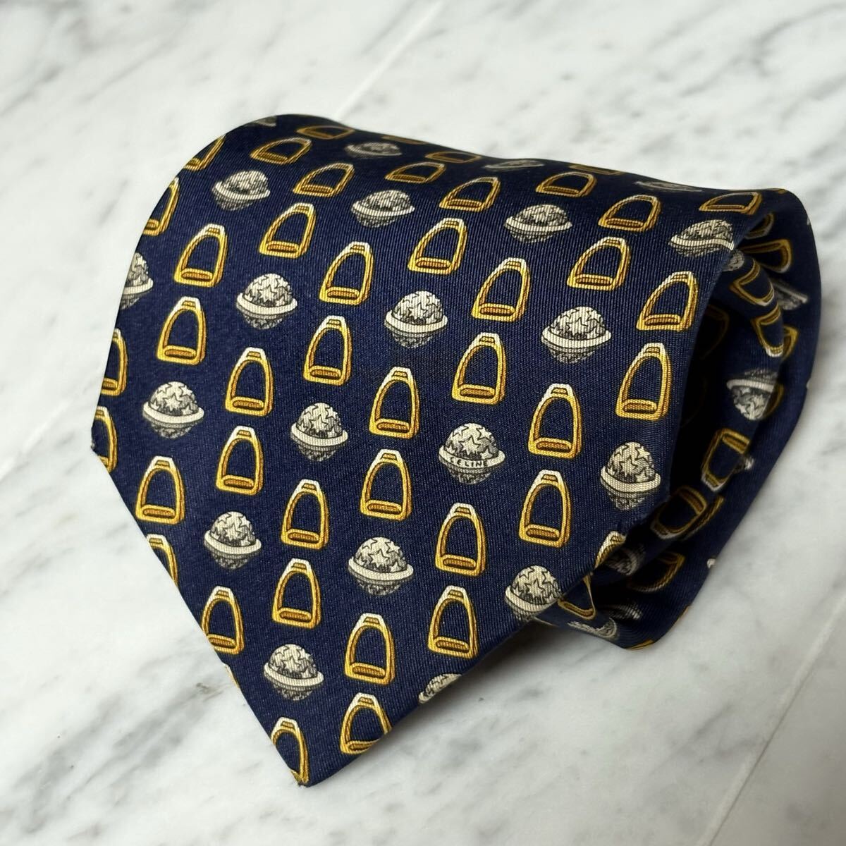 - 770円~ CELINE ネクタイ ネイビー パターン柄 (B9)