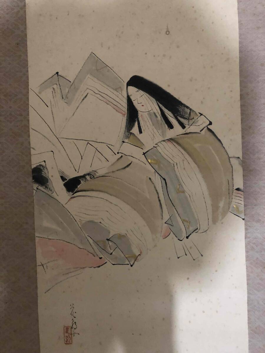 - 【掛軸】紅姑「花卉」共箱付き 日本画 花図 古美術 茶掛け 書画 和モダン 床の間に