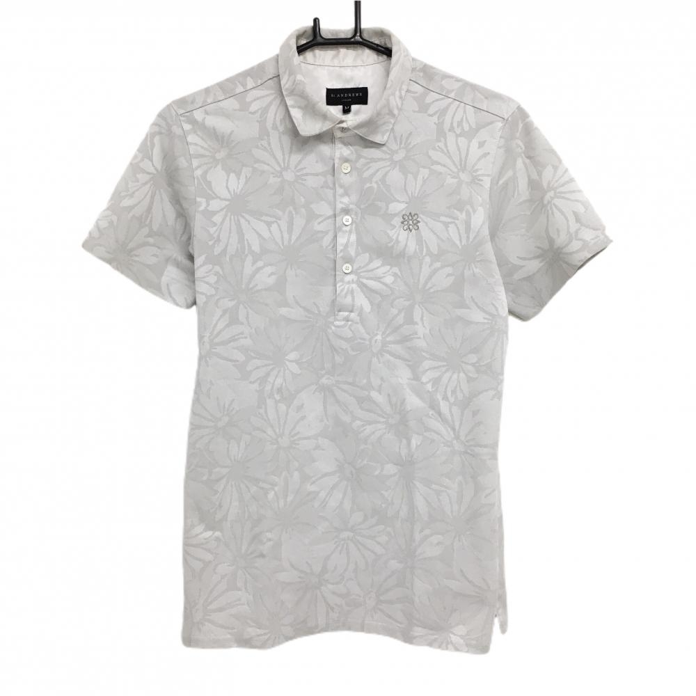 - セントアンドリュース 半袖ポロシャツ ライトグレー×アイボリー 花柄 ラメ糸 光沢感 ロゴ刺しゅう メンズ M ゴルフウェア St ANDREWS