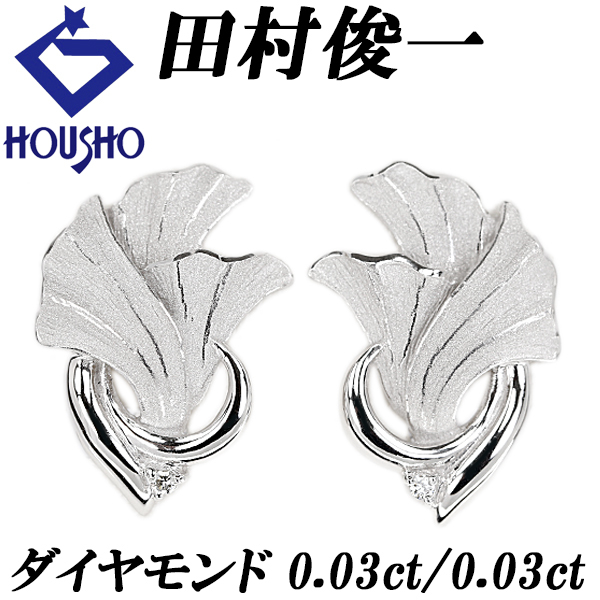 > 田村俊一 ダイヤモンド イヤリング Pt900 K18WG SHUN TAMURA 作家 デザイナー 梨地 マット ツヤ消し 中古 宝正 901677