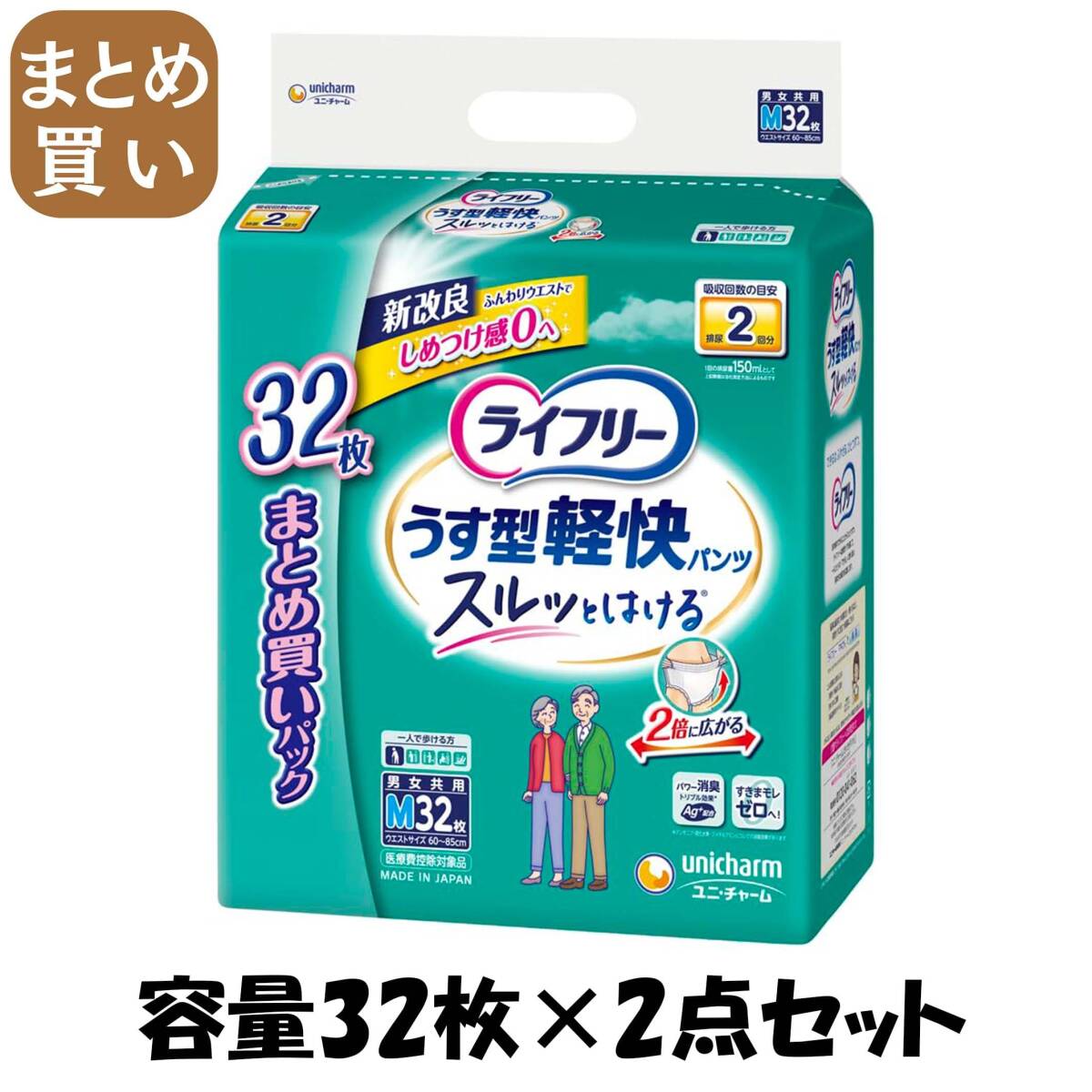 - 【まとめ買い】ライフリーうす型軽快パンツM32枚容量32枚×2点セット ユニ・チャーム(ユニチャーム) 大人用オムツ