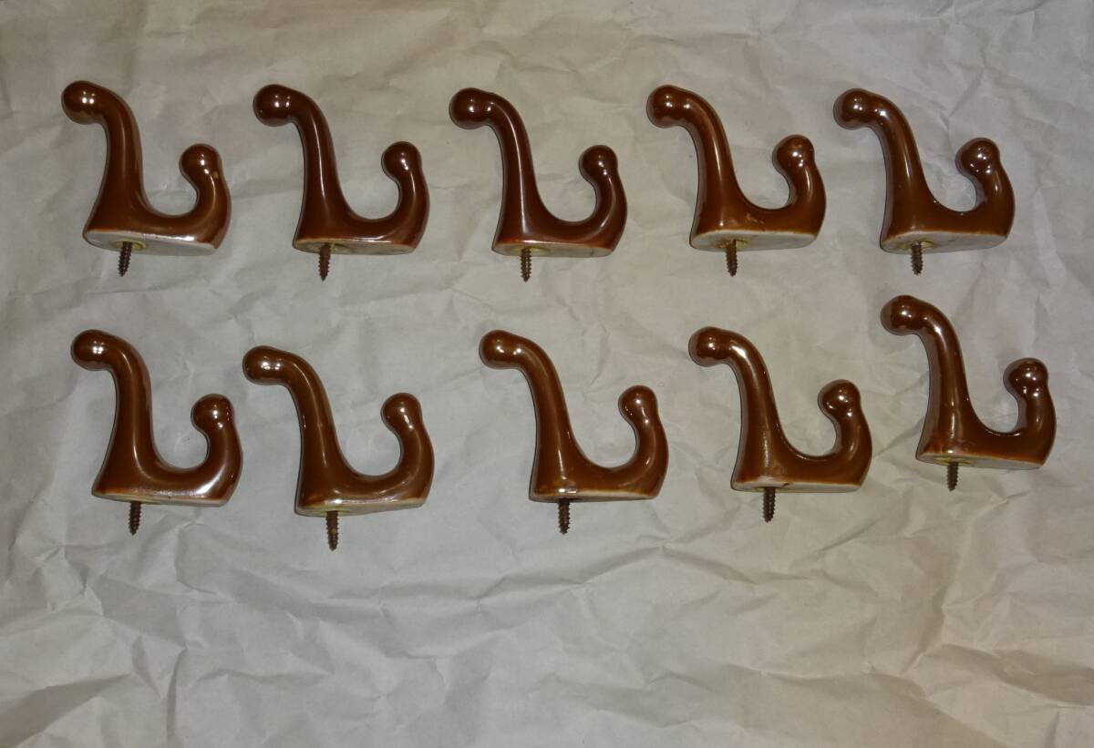 - 昭和レトロ陶器製フック 帽子掛け コート掛け フック10個セット ③