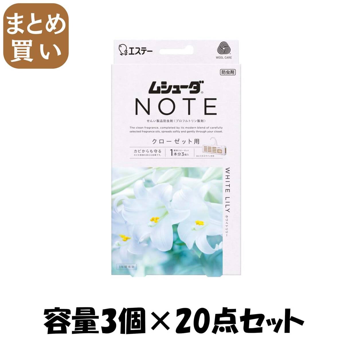- 【まとめ買い】ムシューダ NOTE 1年間有効 クローゼット用 3個入 ホワイトリリー 容量3コ×20点セットエステー 防虫剤