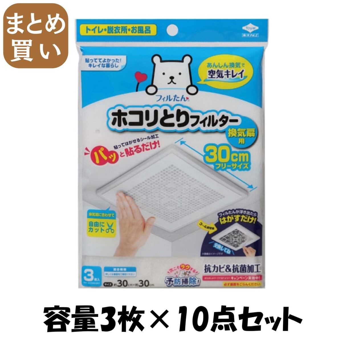 - 【まとめ買い】パッと貼るだけホコリとりフィルター換気扇用30cm3枚入り 容量3枚×10点セット 東洋アルミ アルミ
