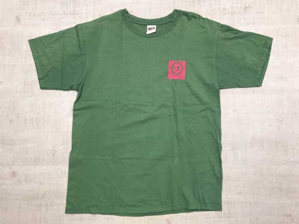 - レアカラー 葉山 湘南 げんべい ビーチサンダル アンビル anvil製 ロゴプリント 半袖Tシャツ メンズ コットン100% 両面プリント L 緑