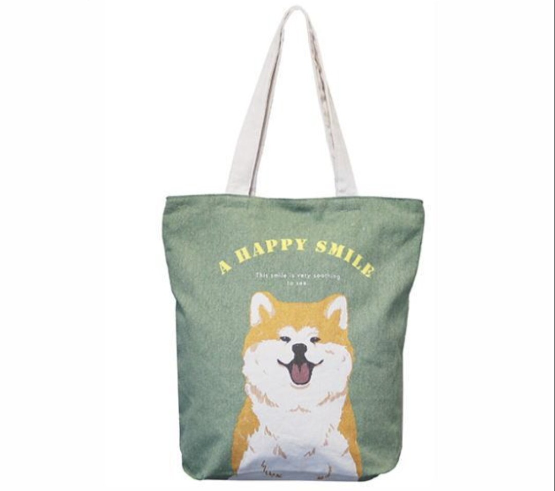 - トートバッグ タテ型トートバッグ きなこ 犬 イヌ アニマル 動物 背面ポケット キャンバストート A4サイズ