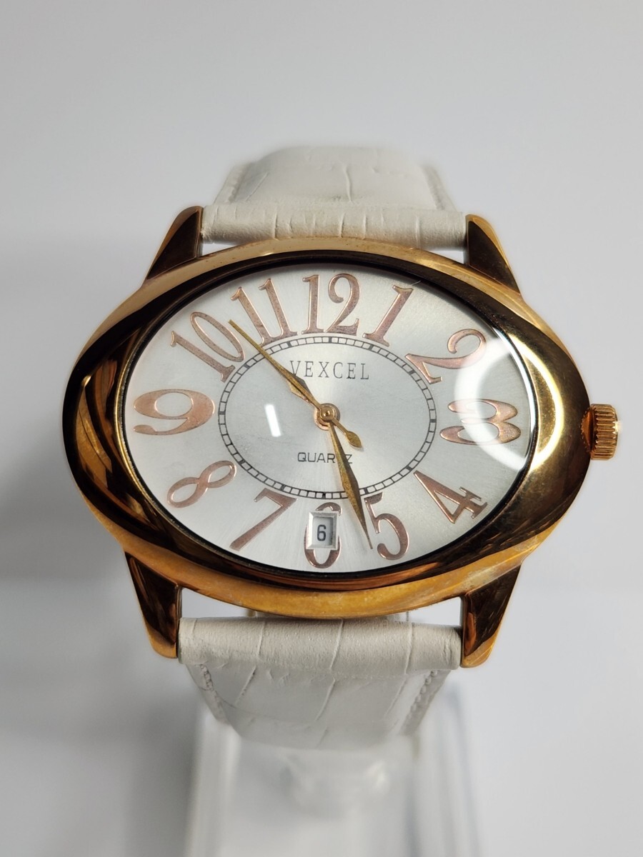 - ▼新品未使用 /VEXCEL /レディース ビッグフェイス腕時計 ウォッチ 3針 日付クォーツ オシャレ文字盤 本革 ベルト 3ATM 日本製ムーブメント