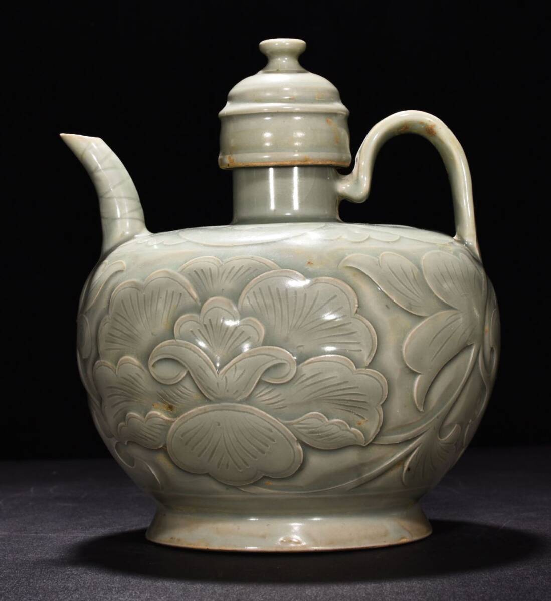 - BD175■宋時代 耀州窯 刻花卉鳳凰執壺 時代物時代物 古玩 唐物 古陶磁器■