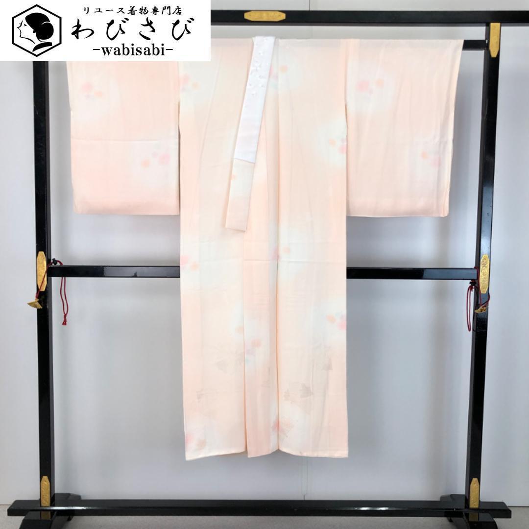 - 長襦袢 扇子 乙女色 刺繍半衿付 J-302 着物 きもの kimono 和服 和装 中古 リサイクル着物 【送料無料】