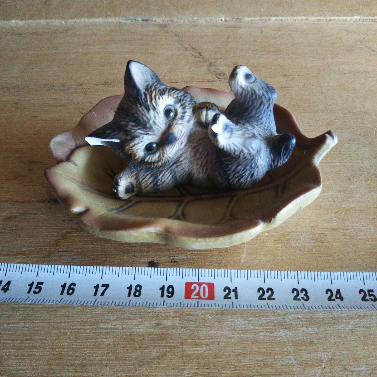- 25080211 葉っぱに乗った猫 インテリア オブジェ 置物 猫 ネコ 小物 陶器 猫コレクション