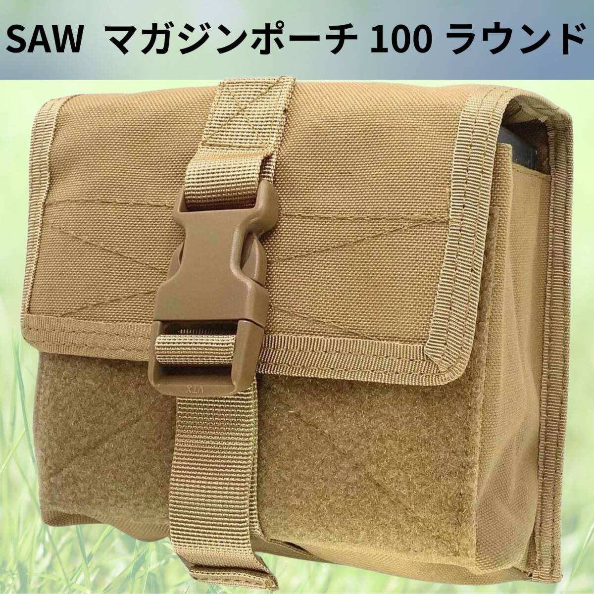 - SAW マガジン ポーチ 100 ラウンド ミリタリー ユーティリティ モール 装備 M4 次世代 色:TAN(ブラウン)