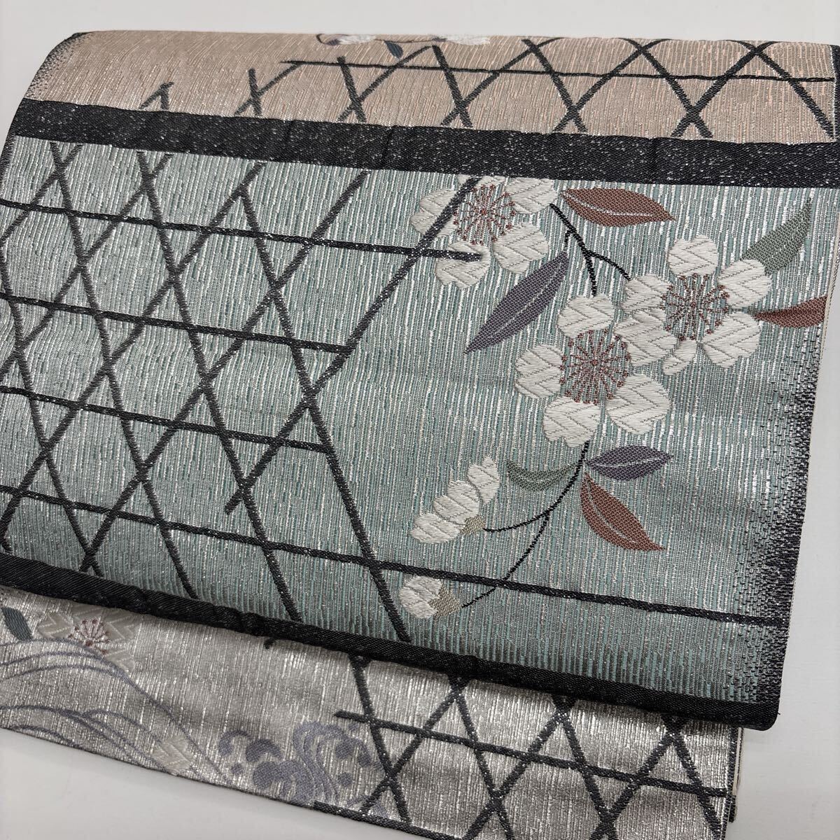 - 袋帯 籠目に上品な唐織の花 正絹 W-3335