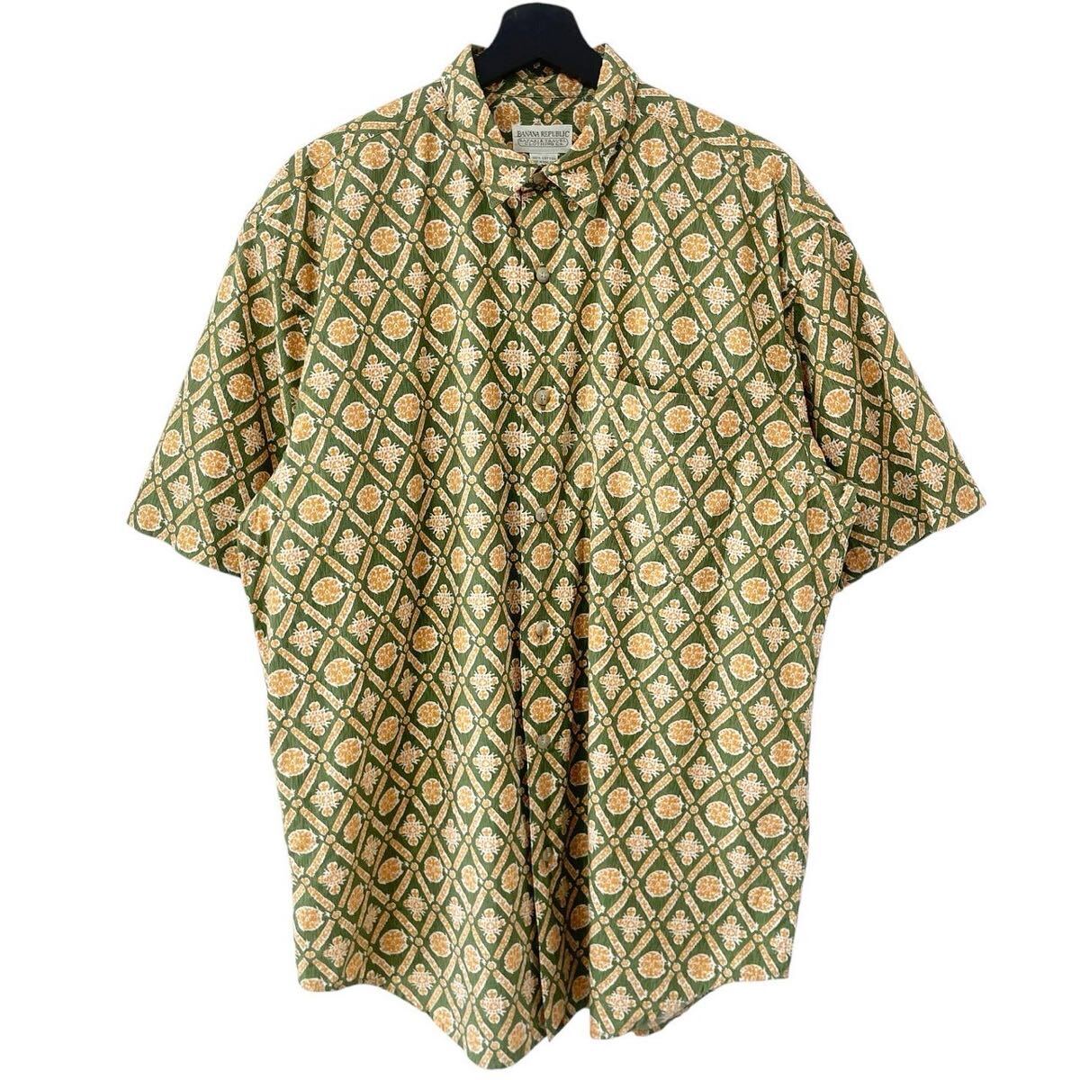 > ■激レア■90s BANANA REPUBLIC SAFARI&TRAVEL HAWAIIAN S/S SHIRT ML バナナリパブリック バナリパ ハワイアン 半袖シャツ総柄 ビンテージ