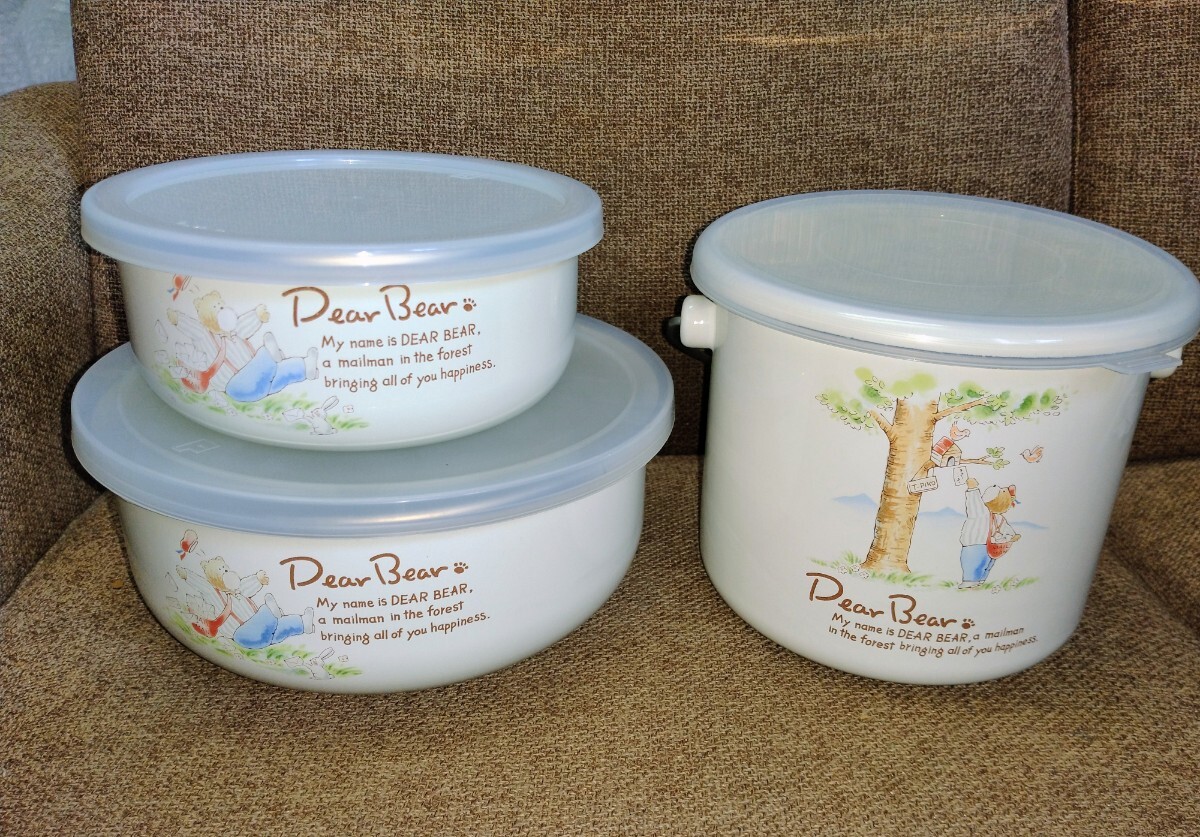 - K274【未使用/保管品】 デアー・ベアー ハンディーセット ホーロー容器 蓋付き サラダボール ハンディポット 3点セット