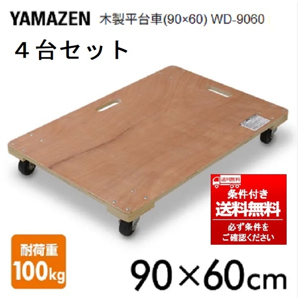 > 未使用品 YAMAZEN/山善 WD-9060 木製平台車(90×60) 4台セット 条件付き送料無料/個人宅最寄福山営業所止