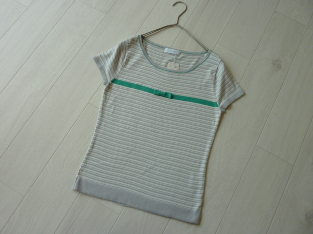 - 新品タグ付き エフデ ef-de コットンブレンド ボーダー 半袖 ニット カットソー サマーニット サイズ9