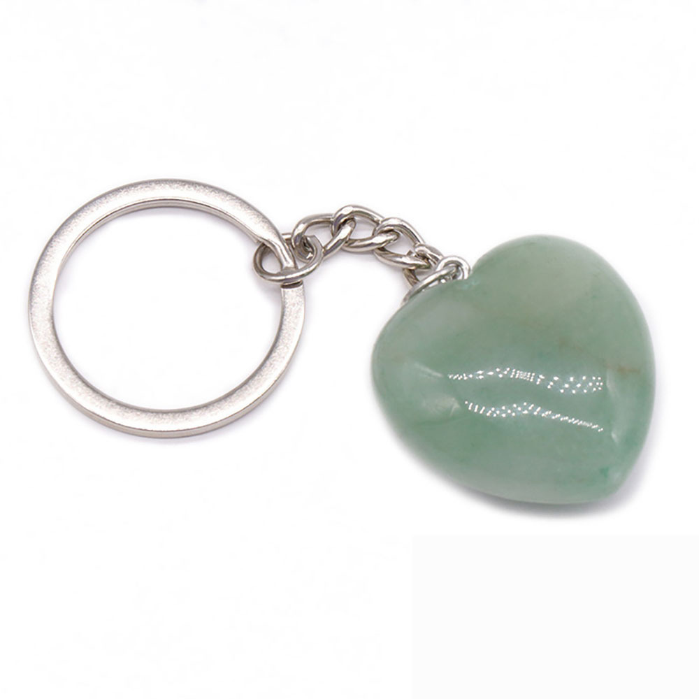 - キーホルダー ハート 石 ストーン グリーンアベンチュリン 薄い緑 アクセサリー