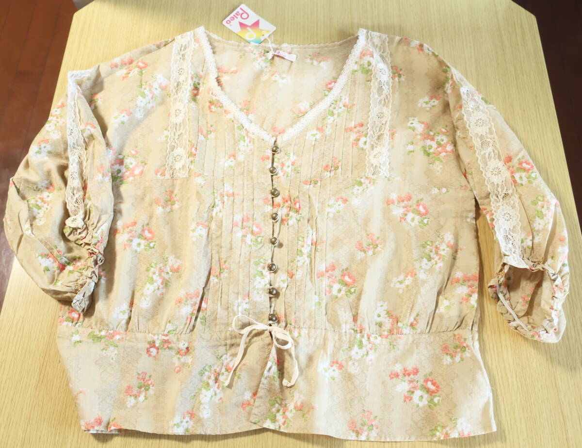 - paleo2【3L】★フェアリー・花柄×レース×バルーンスリーブ(7分袖)ベージュ系【3L】未使用