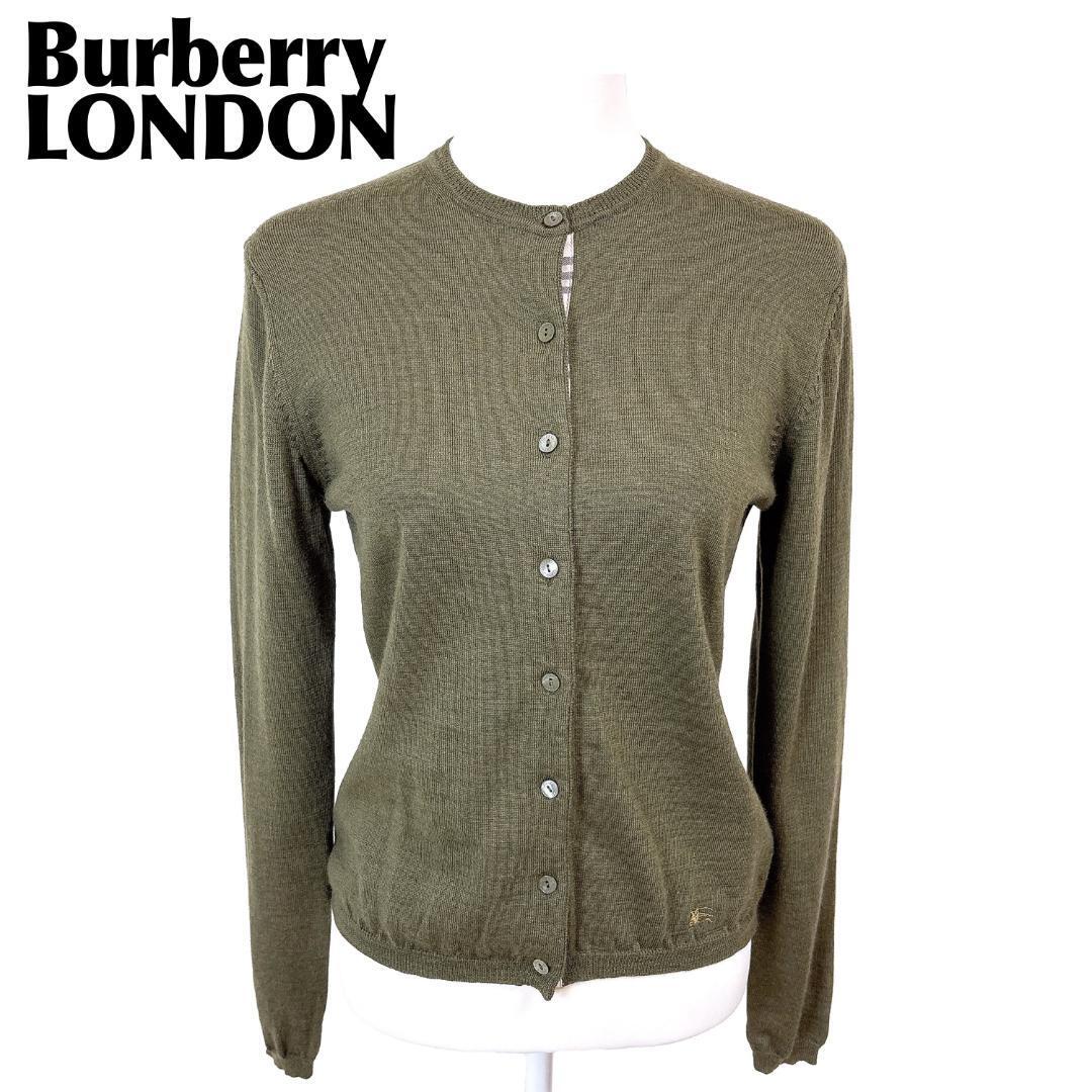 - 【美品】バーバリーロンドン ノバチェック裏地カーディガン M グリーン
