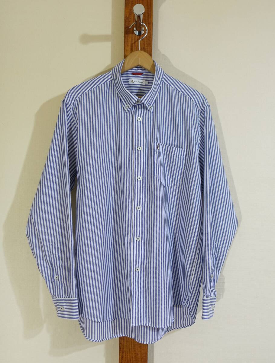 > HUSH PUPPIES/ハッシュパピー◆シャツ ボタンダウン ストライプ 織り柄 ネイビー~ブルー系 ブルーメイト