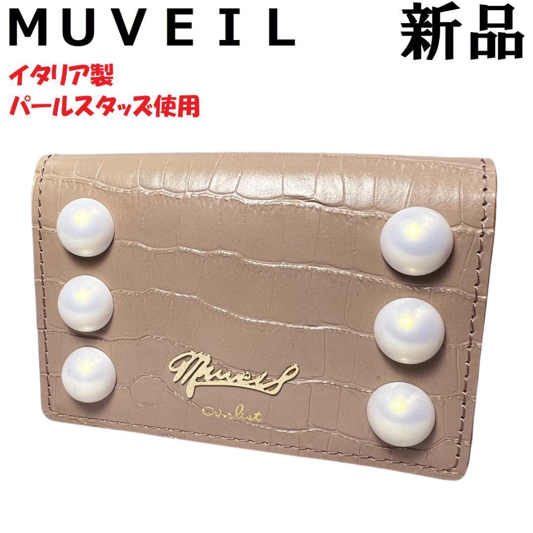 - 【新品】MUVEIL ミュベール パール クロコ型押し カードケース 名刺入れ グレージュ×オレンジ レディース かわいい 上品 希少 本革 レザー