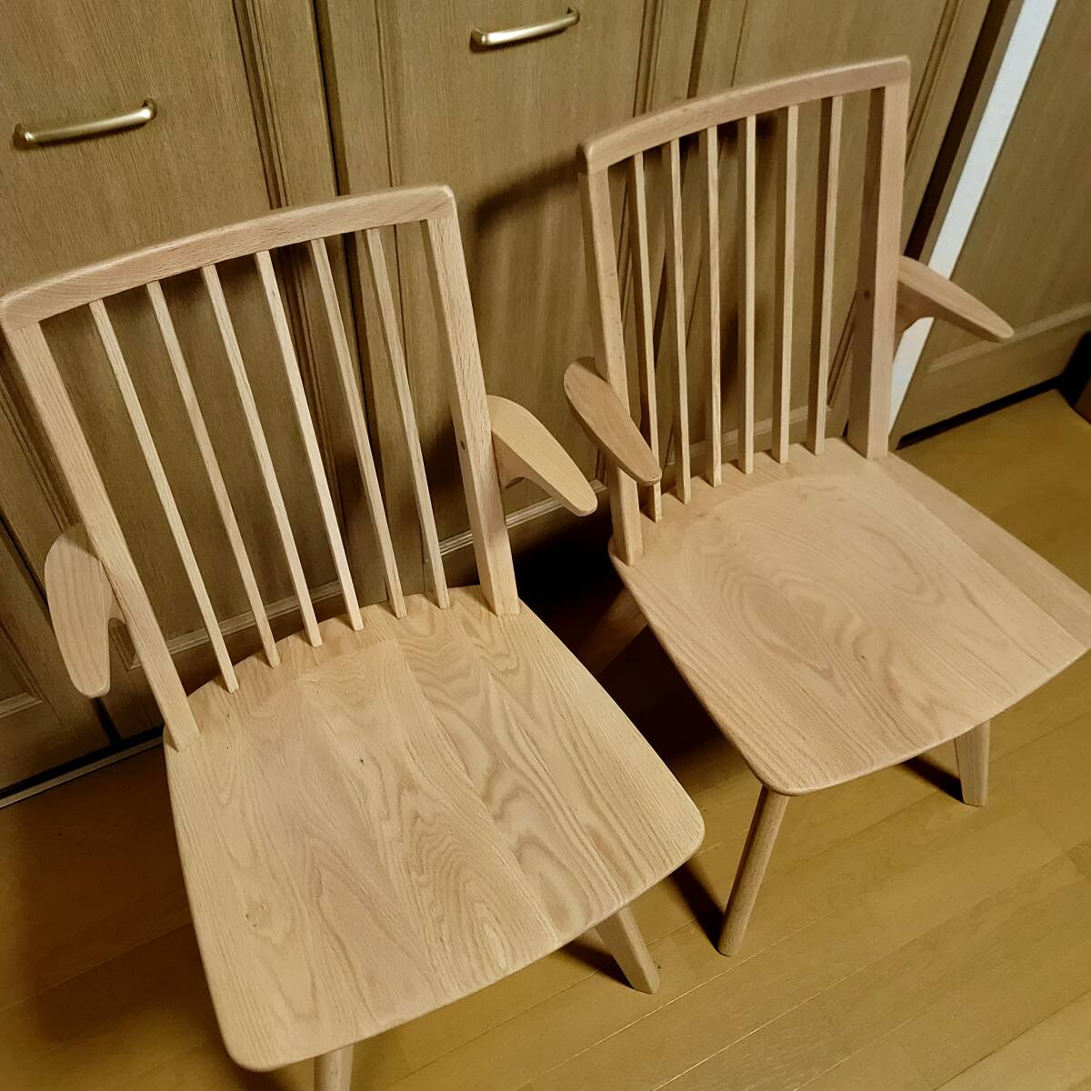 - 浜本工芸 ダイニングチェア 2脚セット 回転 アームチェア