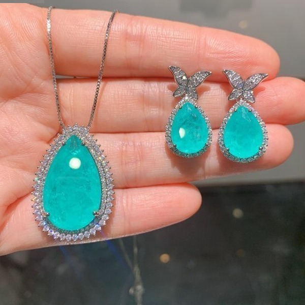 > 【価格の問合せのみで値下げ】豪華な女性用トルマリンジュエリーセット、最初の入札者様は開始価格で購入可能 Kn
